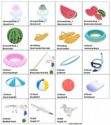 •19 additional beach-themed items.
