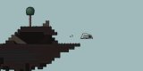 The main character is thrown out of the car to floating island. He discovers that there is nothing but two trees and ground with rocks.