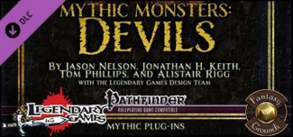 The 11th volume in our Mythic Monsters series, Mythic Monsters: Devils brings you a dozen and one subtle and sinister foes that are quite literally diabolical! Some are content merely to flay your PCs' bodies, cleaving between flesh and bone with deadly keenness, while others are devoted to seduction, corruption, and inveiglement of heart, mind, and soul unto eternal damnation. From whispering imps to terrifying pit fiends that claim lordship over the deepest circles of Hell, these devils fill every niche, with militant levaloch warmonger devils and erinyes to sibilant legalists like the contract devil and heresy devil. The wicked gylou handmaiden devils terrorize the innocent while the sinister salikotal vengeance devils bring Hell's cold and pitiless justice to those who put a foot wrong with their dread masters or have the temerity to try to break a contract signed with the powers of Hell. As if these mythic devils were not enough, Mythic Monsters: Devils also details the inquisition and confession of one bound far too deep in diabolical dabblings, along with an expansion of the devil-bound template to encompass a broader swath of devilkind, as well as introducing a brand-new devil, the lisslefer temptation devil, the kind of serpent that makes an offer too enticing for many to refuse. The 13 devils contained herein, ranging in CR from 3 to 25, are updated for the mythic rules, and when we say updated we mean complete stat blocks, yes, but more than that every one has its own unique and exciting new mythic abilities, from a mythic erinyes' entangling triptych and infernal desecration to the cremation and ineffable damnation of a mythic pit fiend!