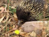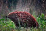 Echidnas, also called spiny anteaters, are walking contradictions. They are mammals, but they lay eggs. They are often classified as long- or sort-beaked, but don't have beaks at all, in the traditional sense; they have fleshy noses that can be either on the long side or rather short. They don't really look like true anteaters (Myrmecophaga tridactyla), either, and they are not closely related to them. They are spiny, though; their bodies are covered with hollow, barbless quills.