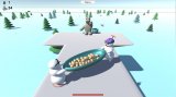 Two snowmen jump with a potato plate from a platform to another. The snowmen have to take potatoes to horsebear.